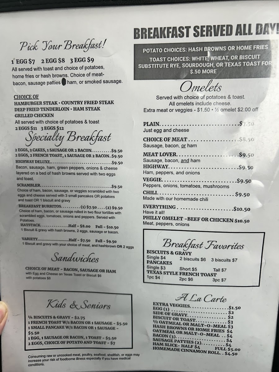 Welcome to Highway Cafe, a cozy stop on North 65 Highway in Lincoln, MO, known for its delicious and affordable meals. The menu features comfort food classics, with standout dishes like the flavor-packed pulled pork, served perfectly without the need for BBQ sauce, showcasing the chef's skill in seasoning.